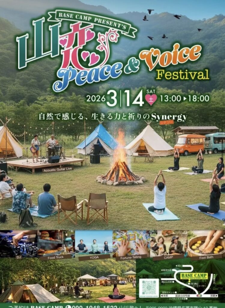 嘉津宇岳山歩きやレンタルサイクル、シークヮーサー収穫体験など、山の魅力がぎゅっと詰まった大自然の中のキャンプ場です。のんびりと自然に身をまかせ、心地よい生演奏他ライブに癒される。四季折々の美しい自然や風景とともに、非日常感と自分スタイルのキャンプが楽しめます。